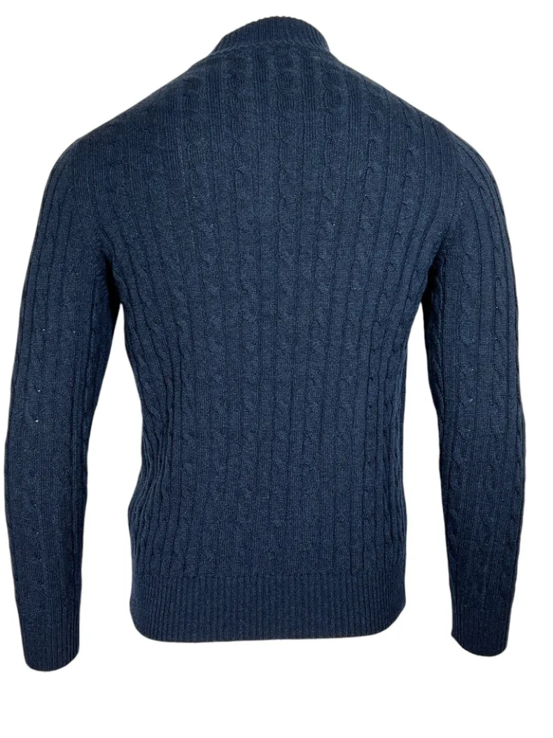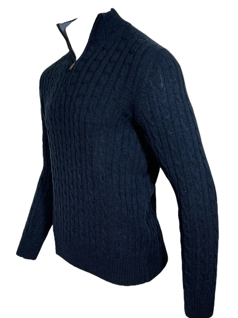 Constructed of luxurious Italian cashmere in acable knit this 1/2 zip sweater is designed to keep you warm and cozy while still looking stylish.