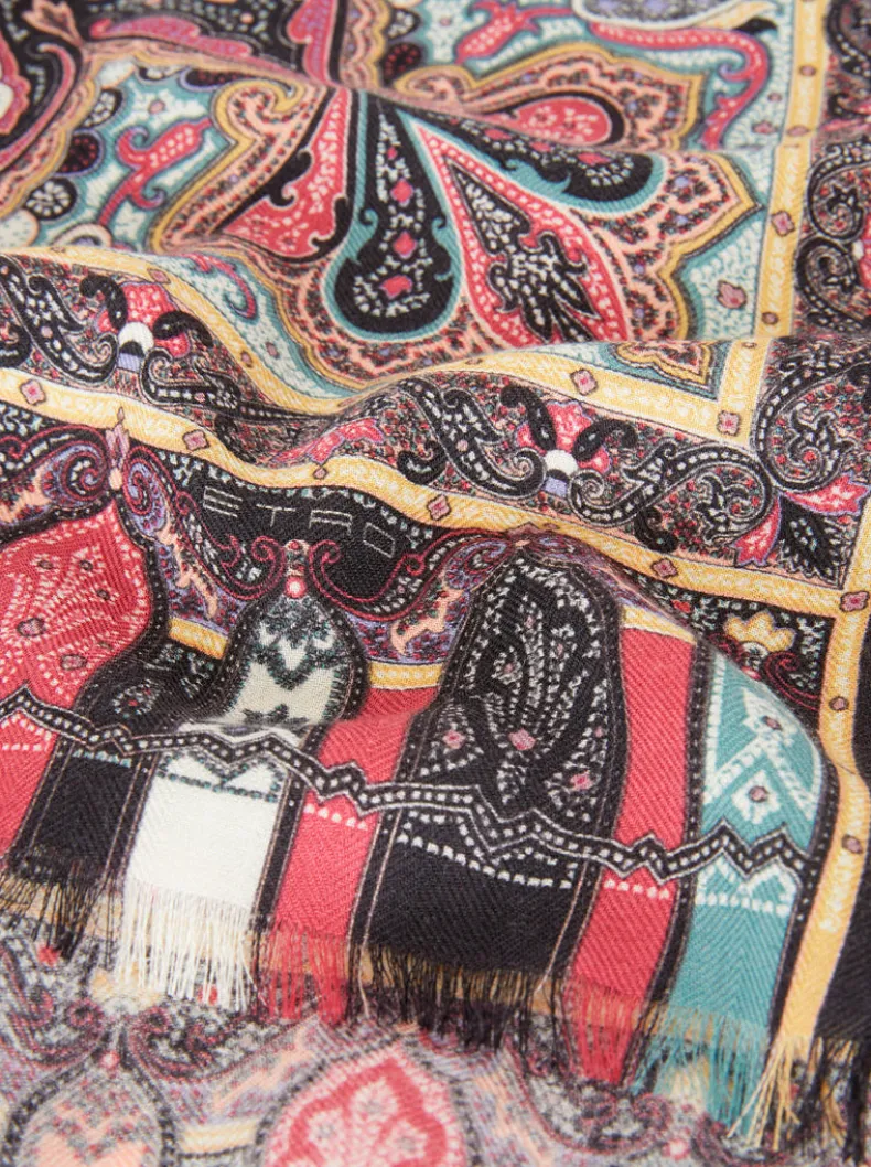 Sophisticated materials with captivating shapes define the style for adventurous travelers creating a balanced contrast between color and the iconic Etro paisley print.