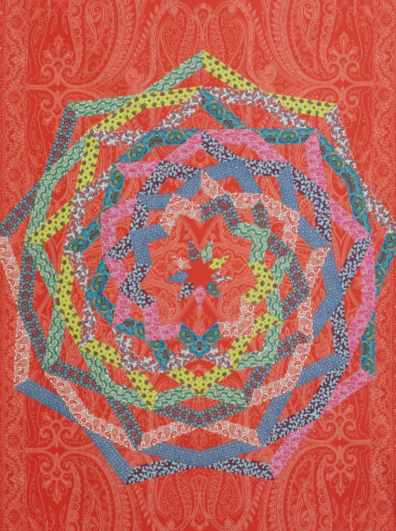 Large cotton beach towel with an abstract floral design. Tassel edges.