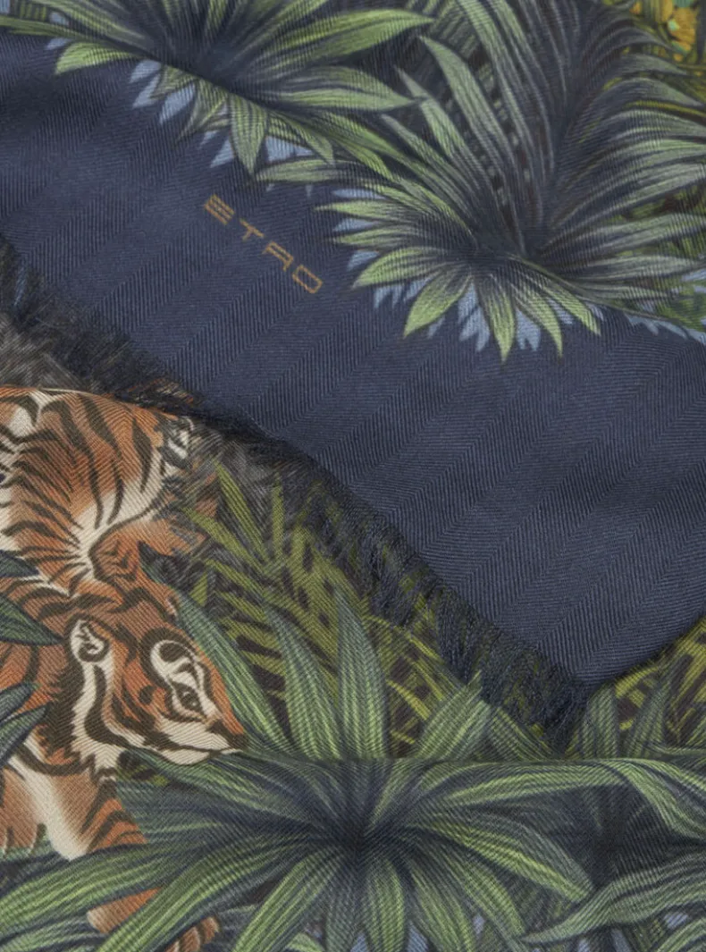 ETRO MODAL & CASHMERE SCARF – NAVY JUNGLE