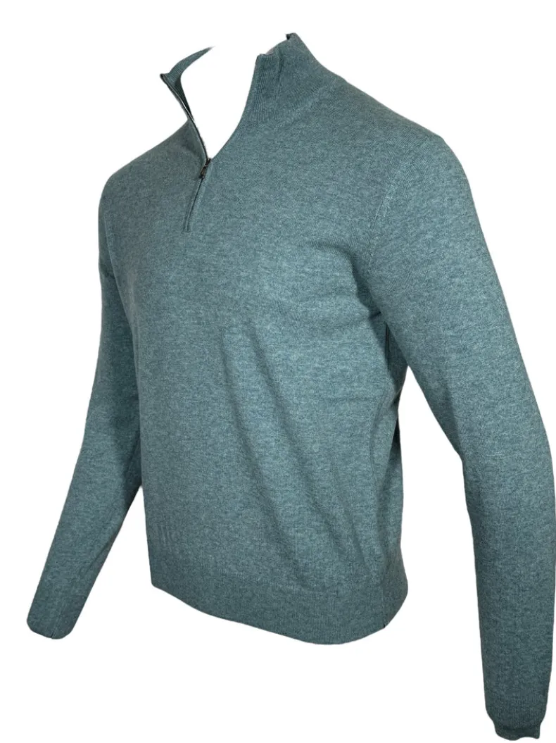 Quarter zip neck sweater in a super soft cashmere fabric.