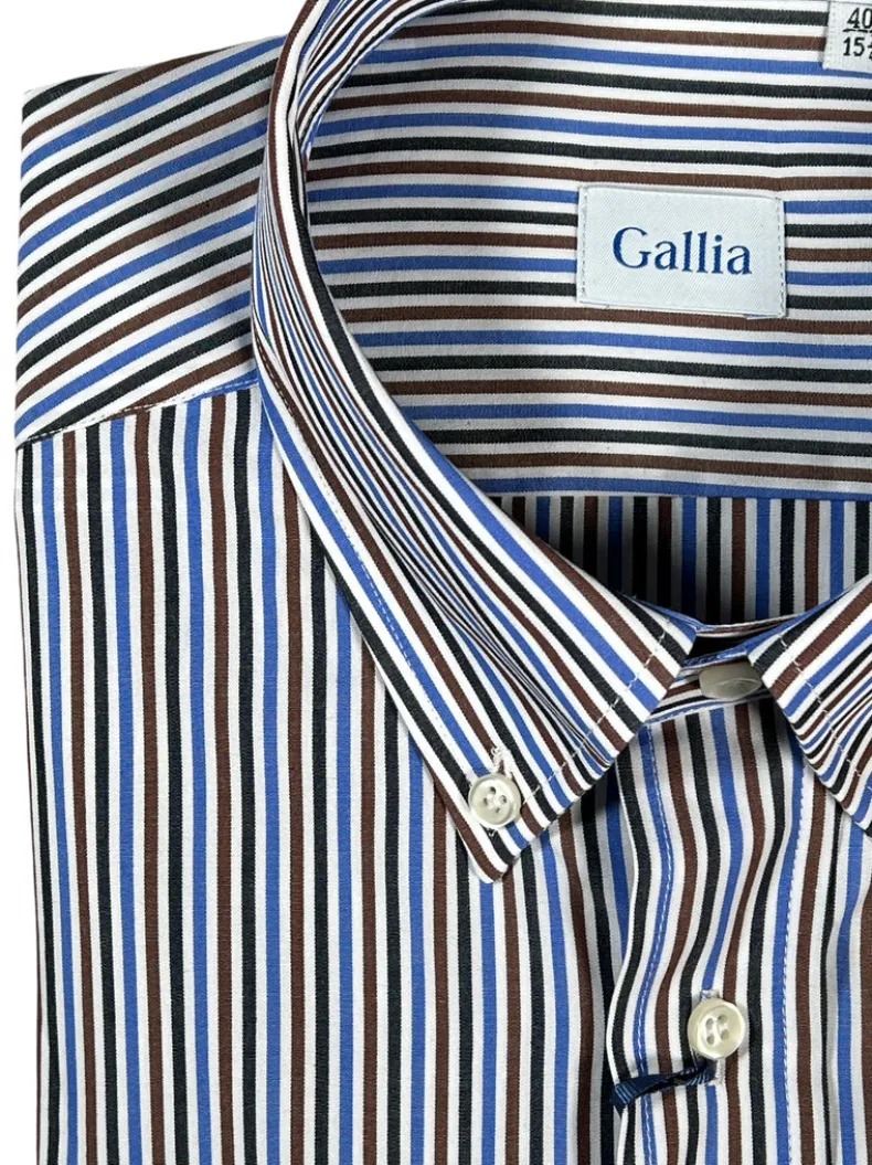 GALLIA MEN’S SHIRT – NAVY/BLUE/BROWN STRIPE
