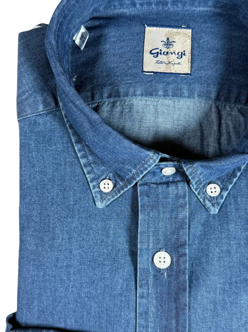 GIANGI NAPOLI MEN’S DENIM SHIRT – DOUBLE STONE WASH BLUE