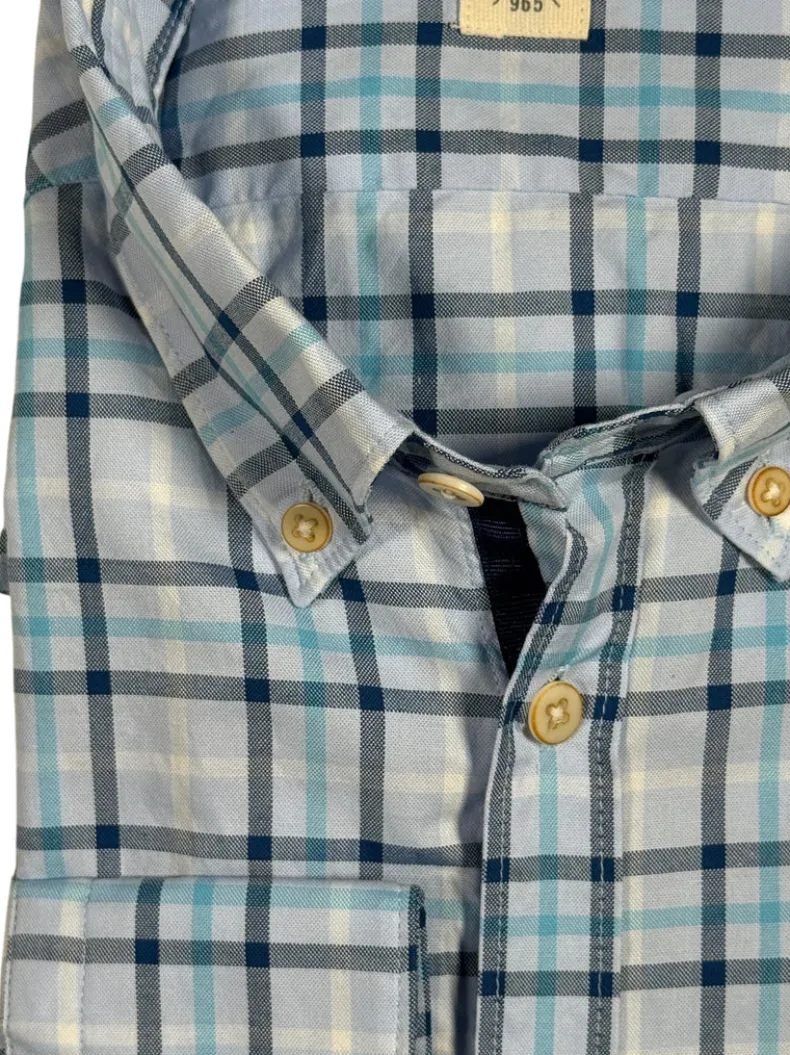 Sport shirt with contrast trim inside placket and a tailored fit.