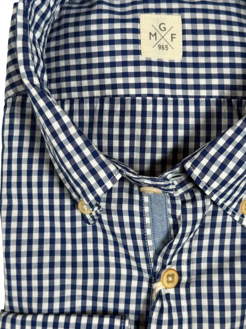 Sport shirt with contrast trim inside placket and a tailored fit.