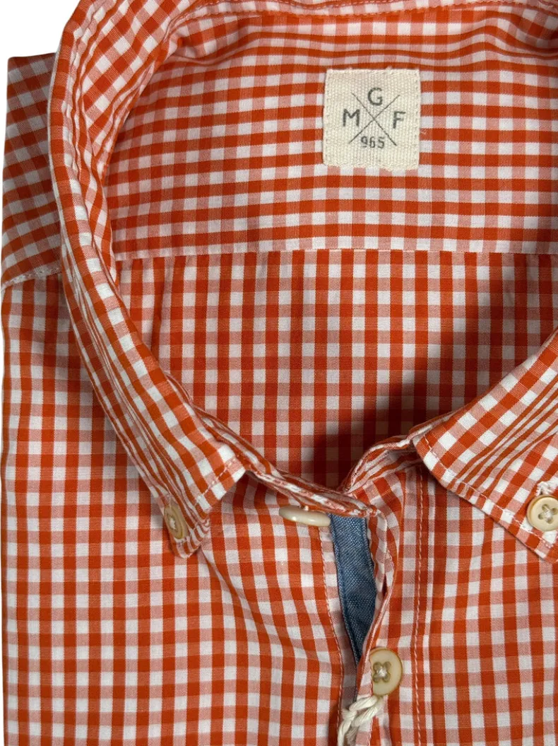 Sport shirt with contrast trim inside placket and a tailored fit.