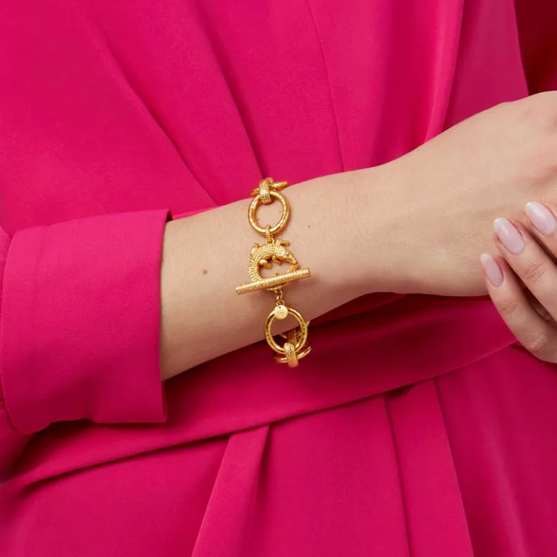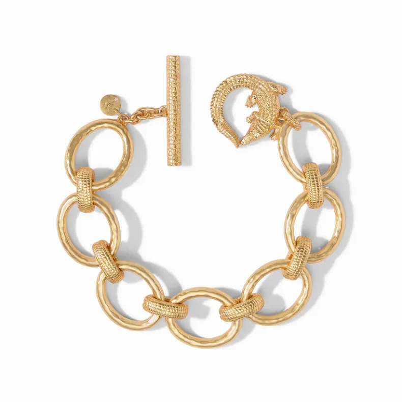 Lightly hammered oval links with textured connecting links, finished with an alligator toggle ring and textured toggle.