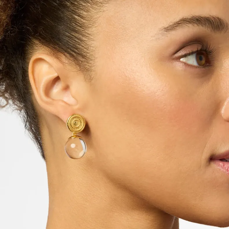 This earring’s hand-hammered golden bands softly glint and glimmer in the light.