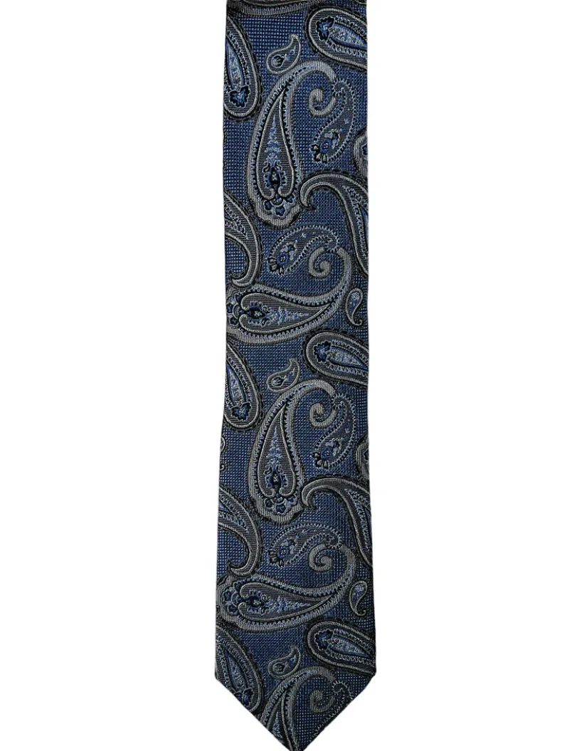 JZ RICHARDS WOVEN SILK TIE – BLUE/GREY PAISLEY