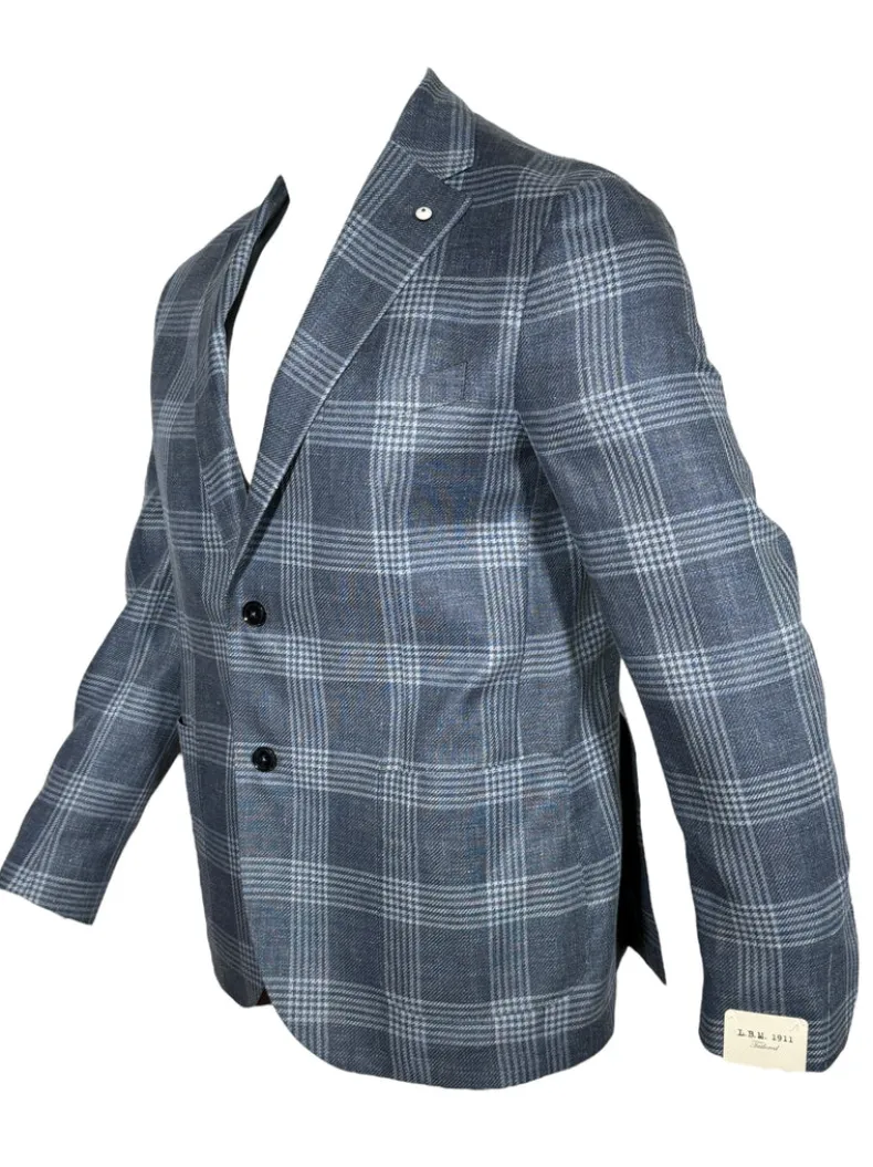 Unlined, double vented sport coat with two button closure, patch and single chest pockets.