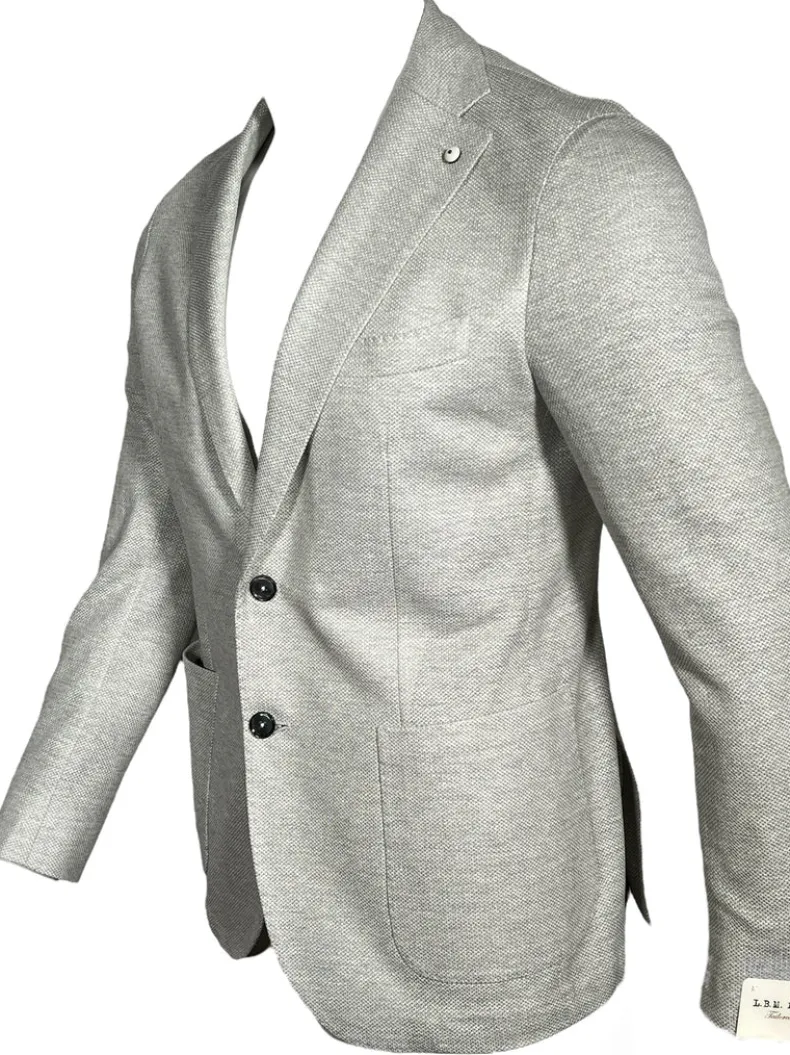 Unlined, double vented sport coat with two button closure, patch and single chest pockets.