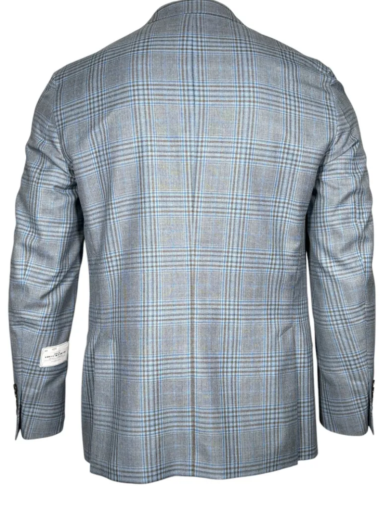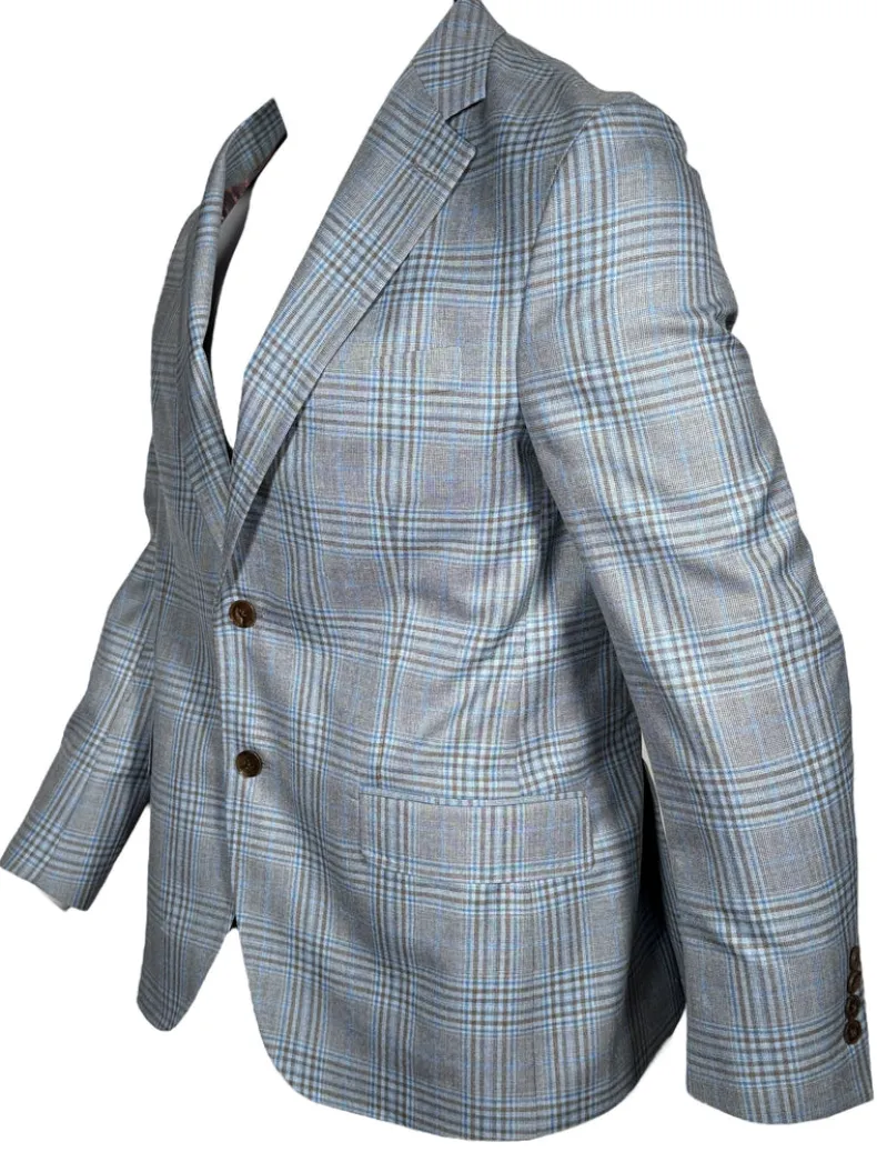 Men’s unlined sport coat in a wool/silk/linen blend fabric. Saber model – regular length body and sleeves for a more traditional look.