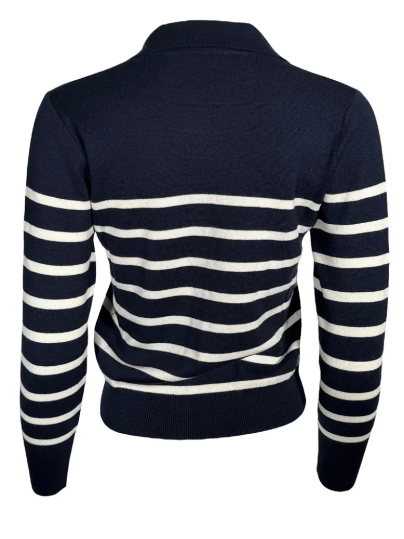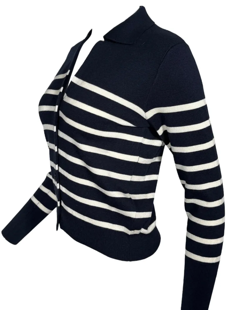 Buttoned cardigan in a luxurious silk and cashmere blend with a slightly nautical feel.