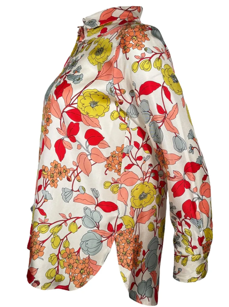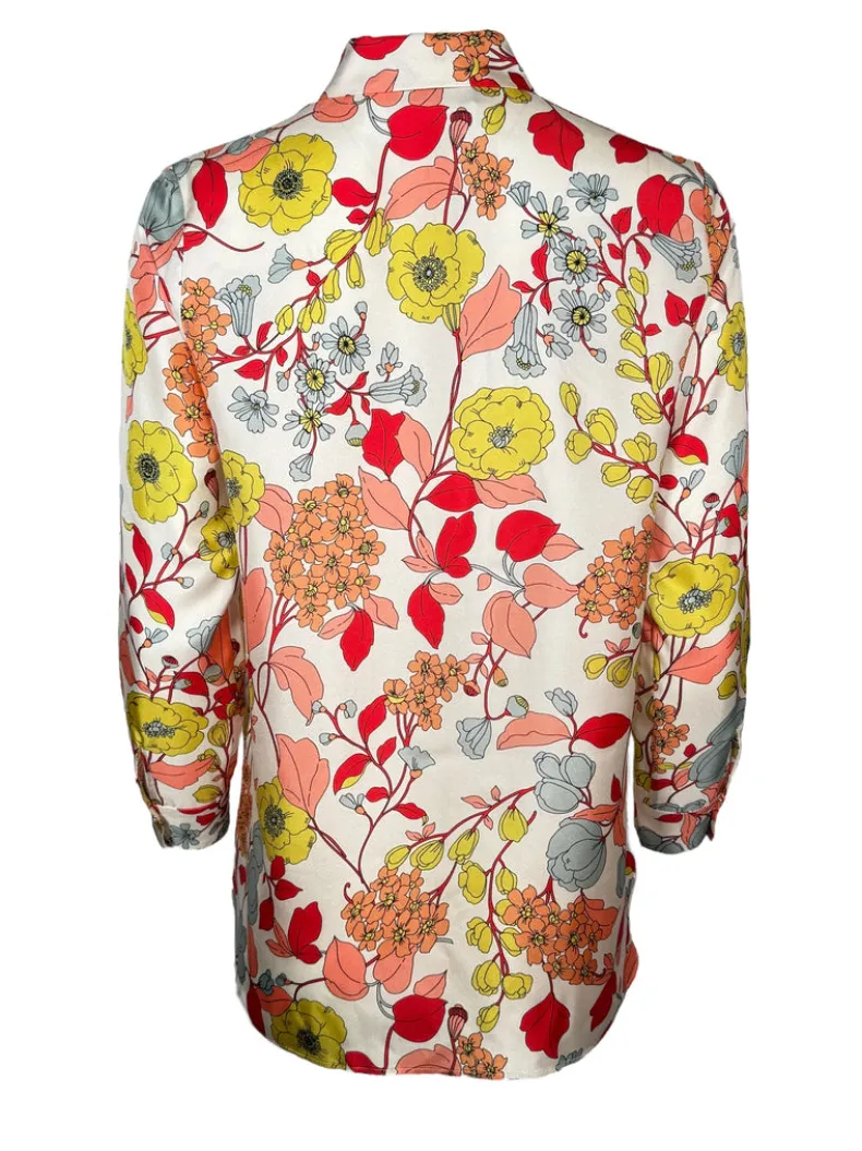 A clear and crisp floral print makes this a standout blouse. With a relaxed fit, this looks fantastic dressed up or down.