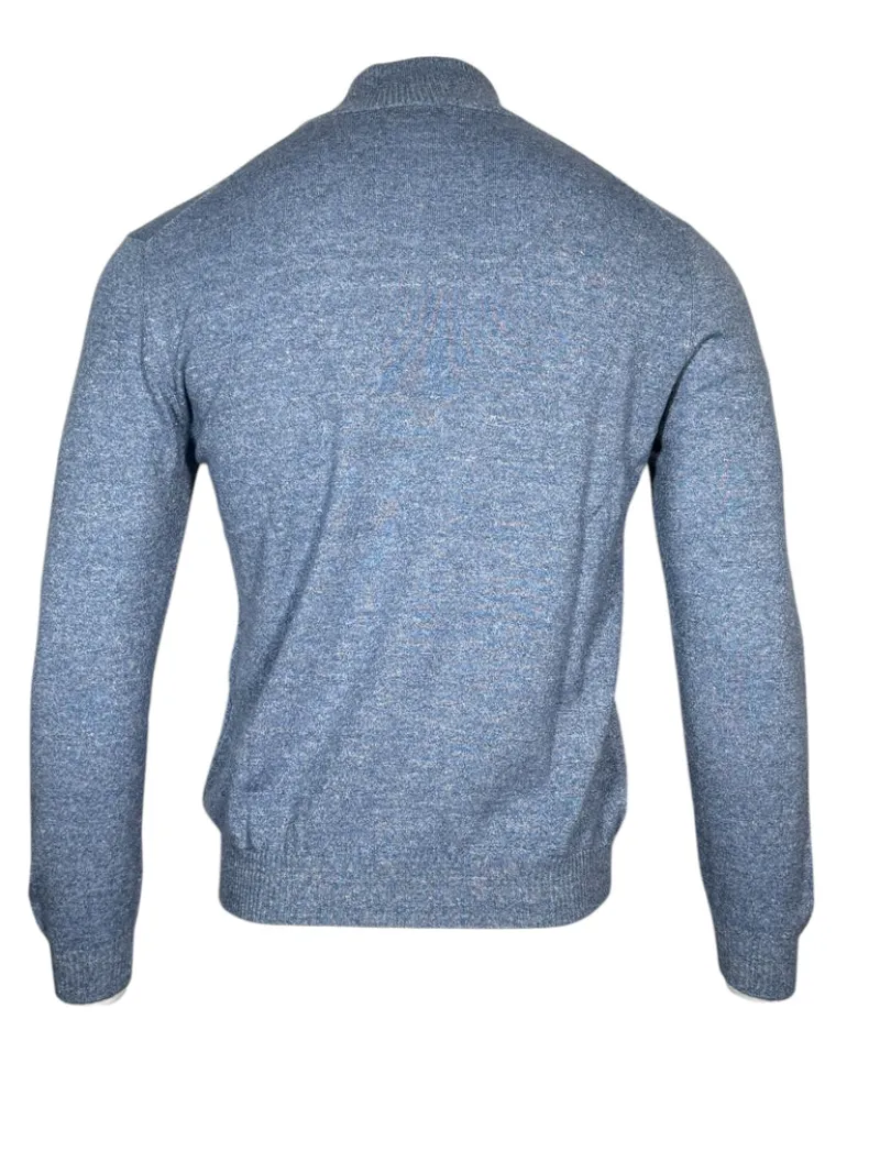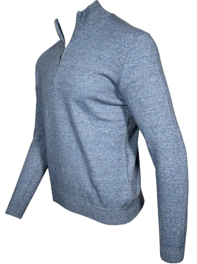 A quarter zip sweater with covered zipper in a seasonal cashmere/linen blend.