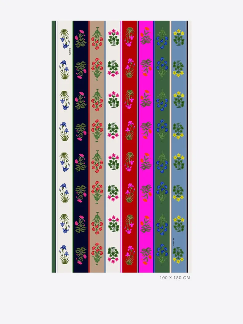 Cotton scarf with stripes and flowers print. Measurements 100 x 180 cm.