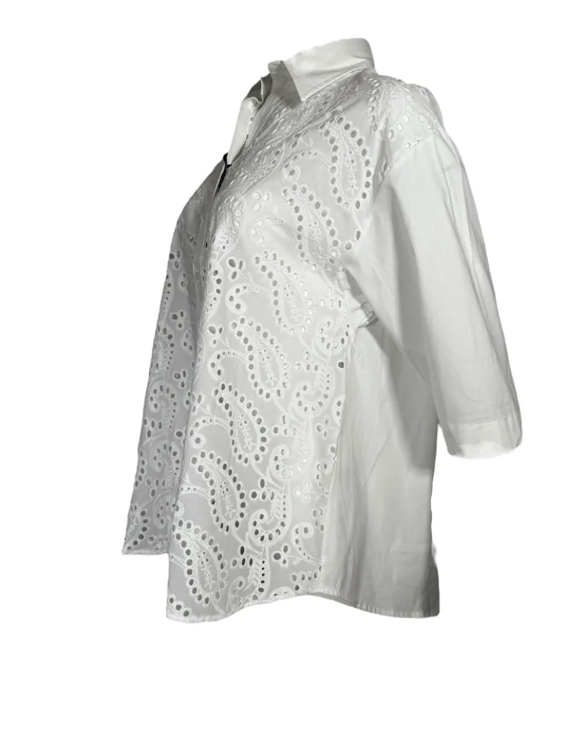 An eyelet front gives this great blouse a casual feel. Great with jeans!
